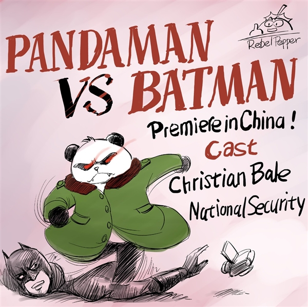 So why is this evil panda jumping on Batman? It’s a reference. When American actor Christian Bale (most recently known for playing the title role in the Batman reboot) went to visit Chinese activist Chen Guancheng, he was pushed around by dozens of guards who were placed there to ensure Chen did not violate house arrest. One guard in particular looked like a Panda, hence the moniker, Pandaman. Thus, Pandaman vs. Batman. An Xiao noted that the meme was so popular, Chen actually identified the guard.