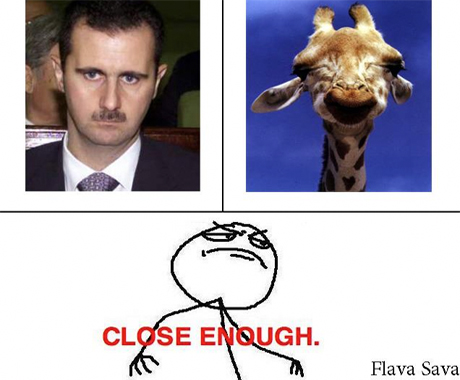 Anas Qtiesh (Global Voices) explained how Syrians used memes during the revolution both to ridicule leaders and spread information, like with this image (via Jillian C. York’s Middle East Memes Guide):