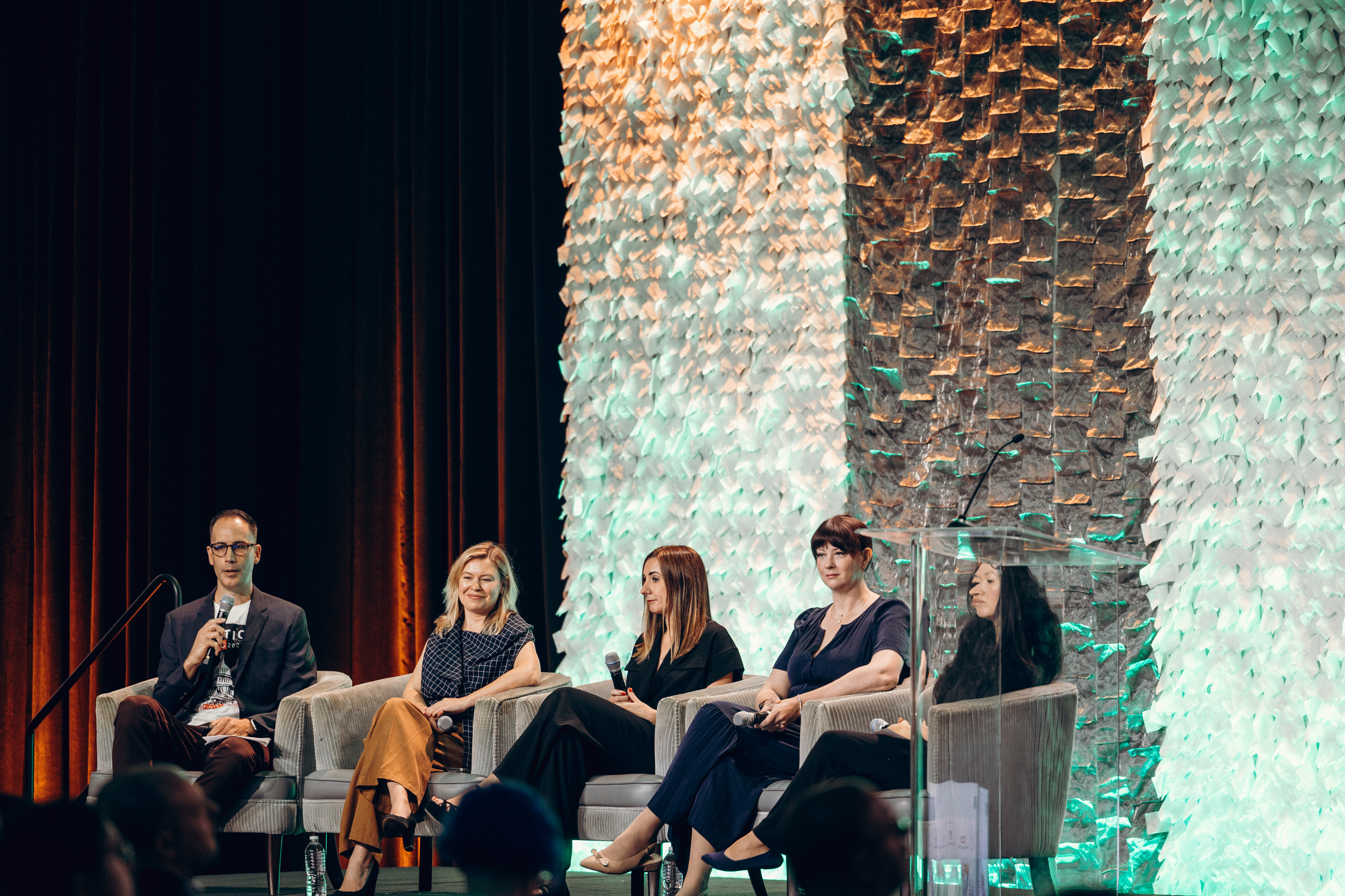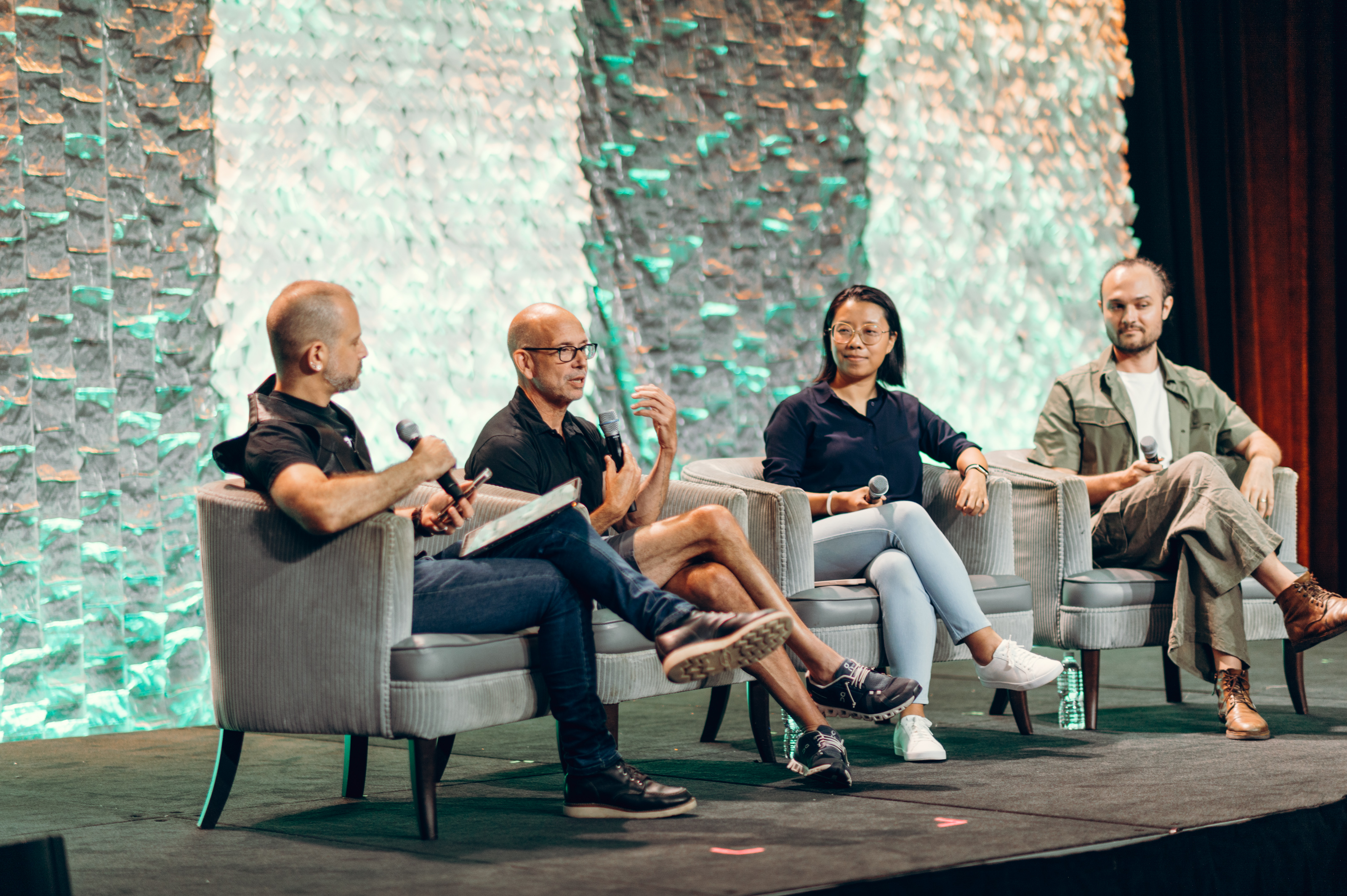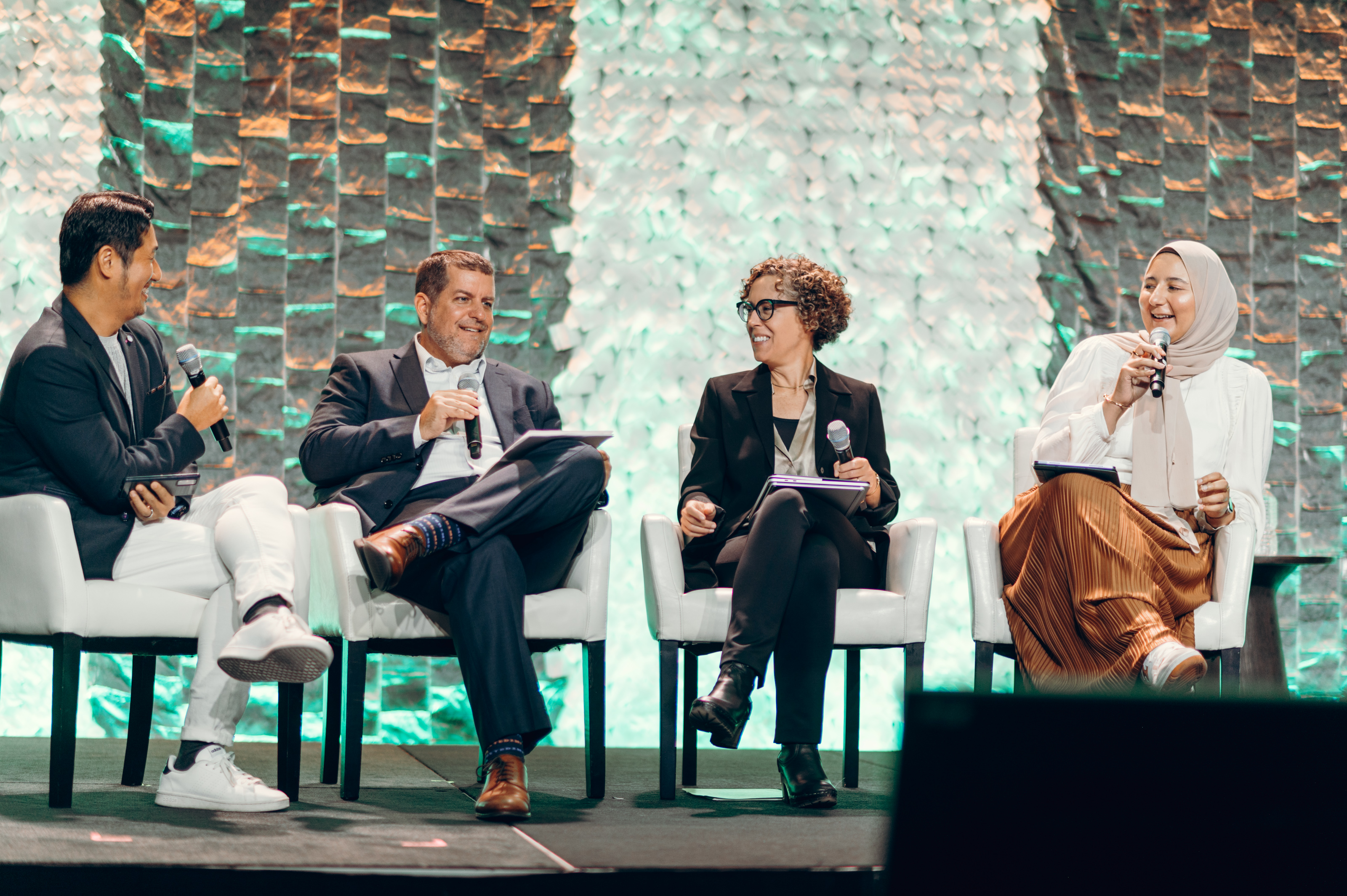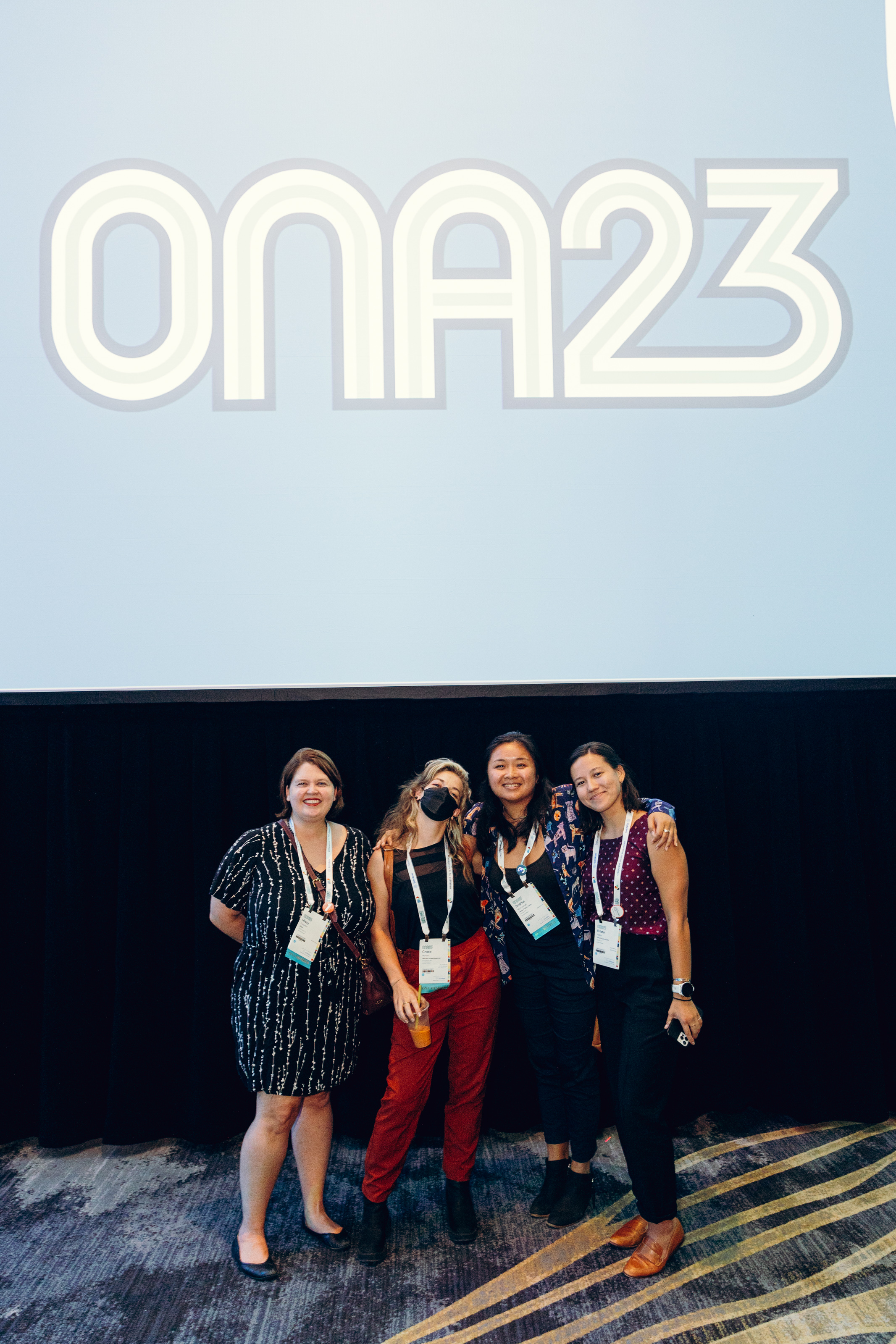 - The featured session “The Promise and Peril of Artificial Intelligence” opened the ONA23: Philadelphia conference, with (right to left) Dalia Hashim, Liz Danzico, Matt Masterson and moderator Paul Cheung. (Photo by Joe Mac Creative)