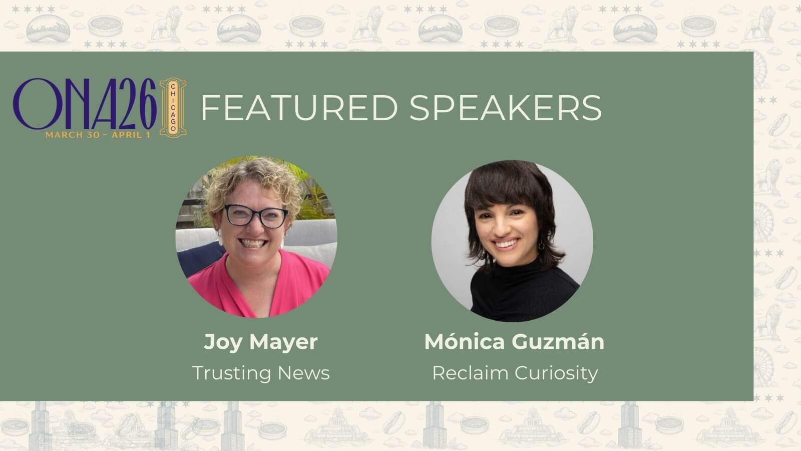 It's no secret that political polarization is eroding trust, community relationships, and civic problem-solving — and that journalism plays a key role in either intensifying or helping to repair that dynamic. Joy Mayer, founder and executive director of Trusting News, and Mónica Guzmán, CEO of Reclaim Curiosity and best-selling author, will explore this challenge in the featured session How Journalism Can Model Curiosity, Confront Bias and Reduce Polarization on Tuesday, March 31, 2026 at 11:30 a.m. CT at ONA26.