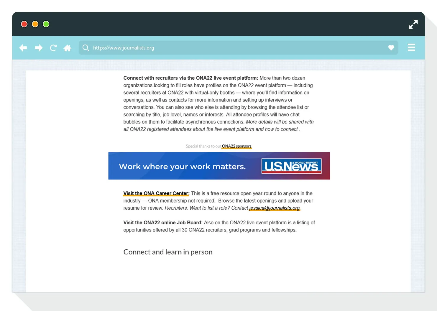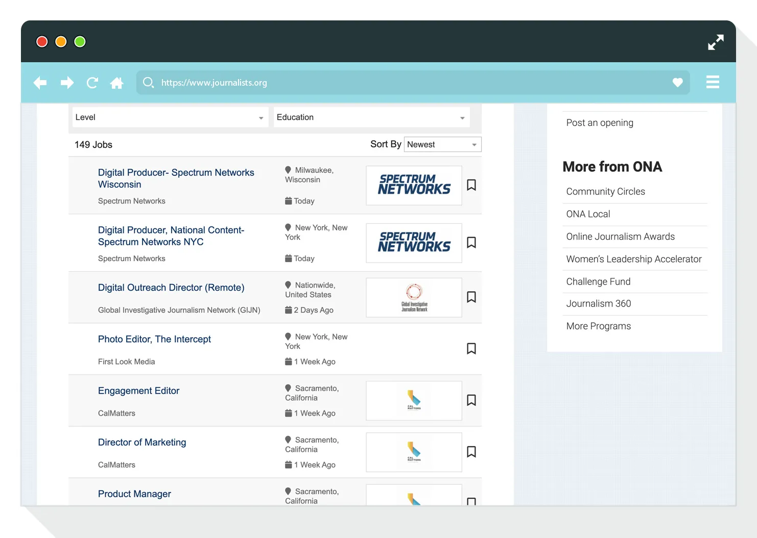 Available placements: ONA Career Center, Annual Conference website, journalists.org, ONA Ethics