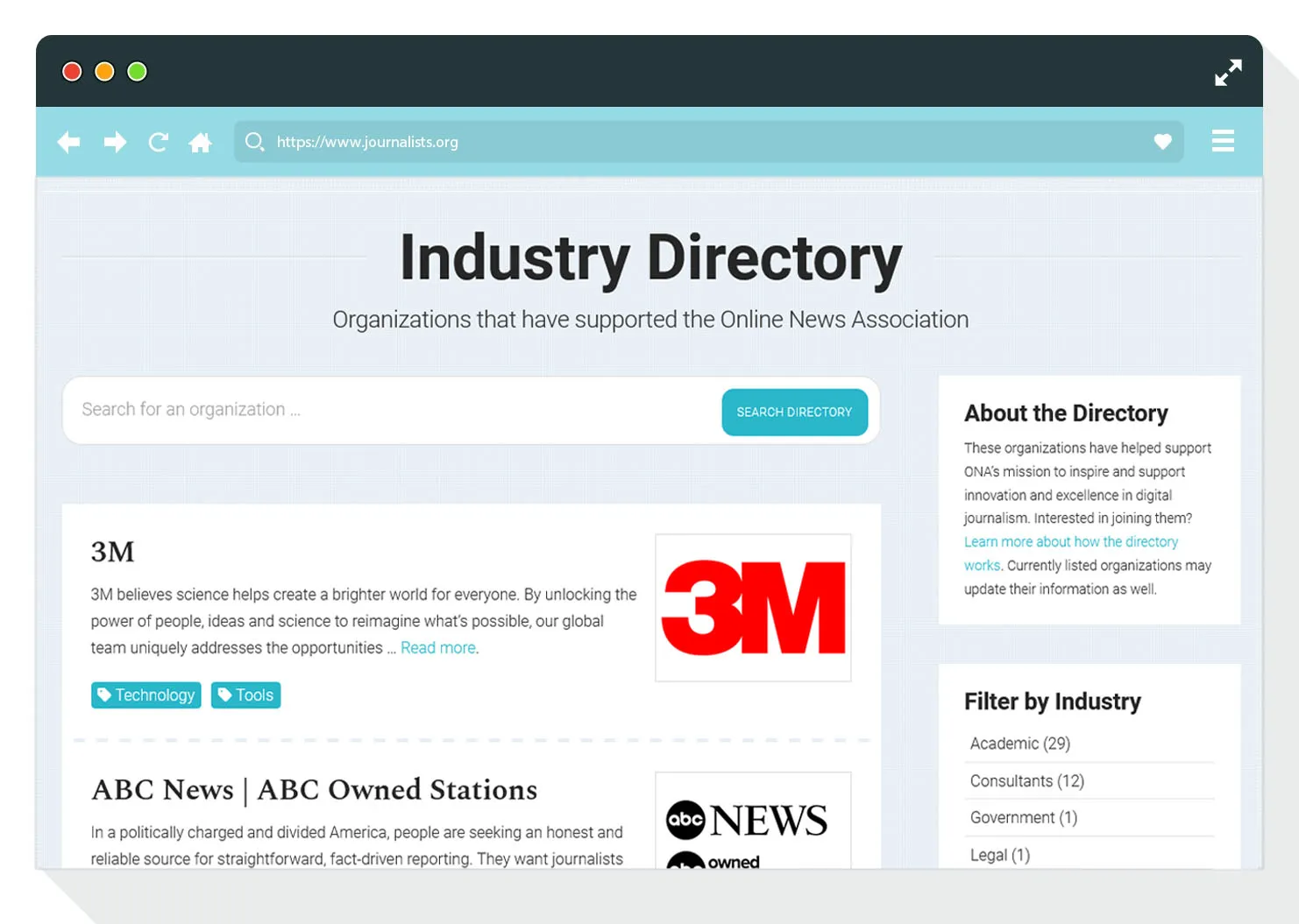 The ONA Industry Directory is a way for sponsors to reach our audience of digital journalists in a searchable database. Directory listings are a great way to have a year-round presence with the community.